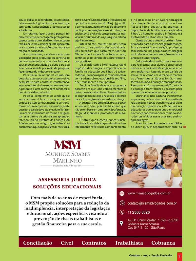 Texto: O Ensinar da Escola e o Educar da Família